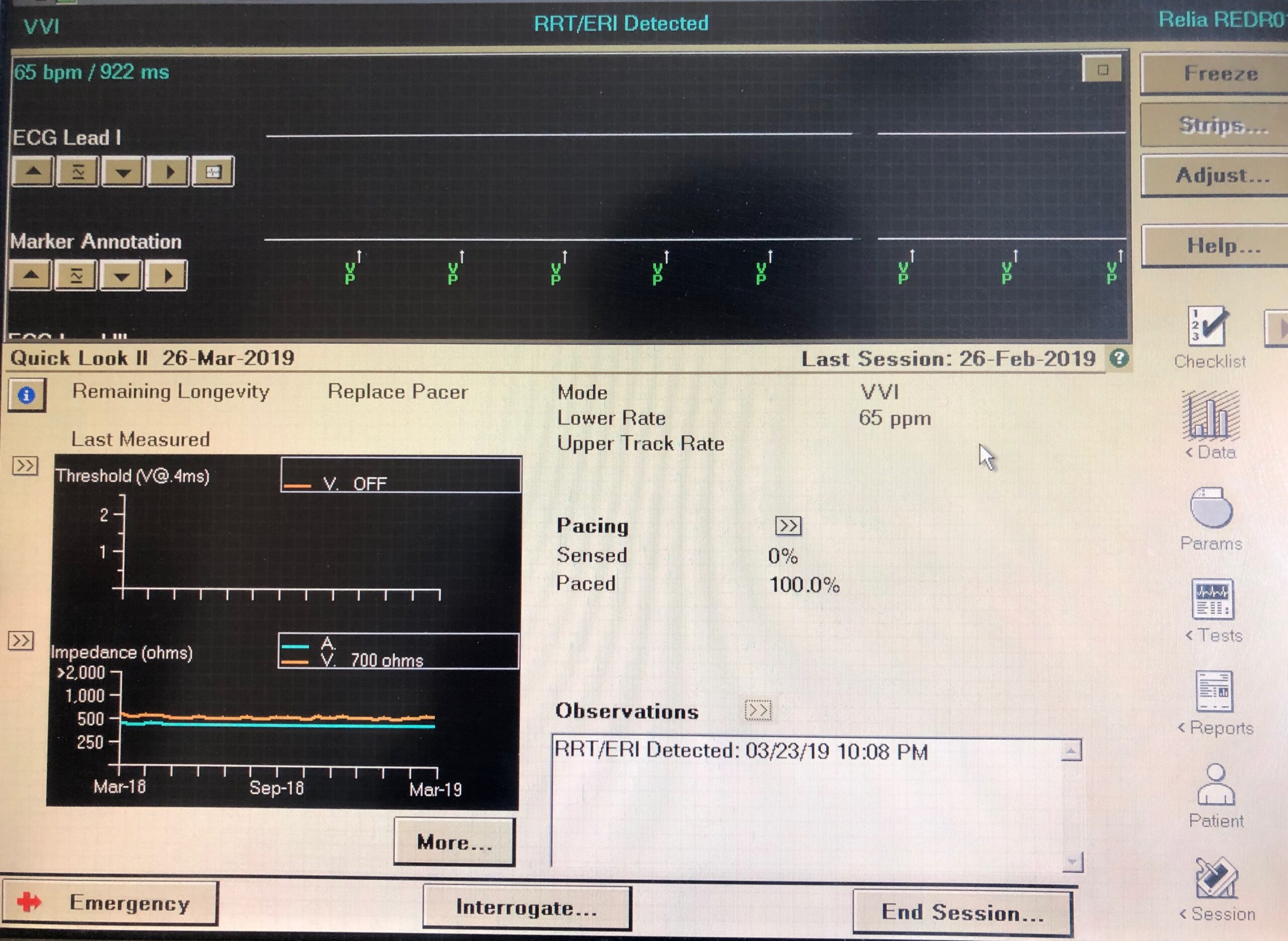 Έλεγχος της κατάστασης και της διάρκειας ζωής της μπαταρίας του βηματοδότη.